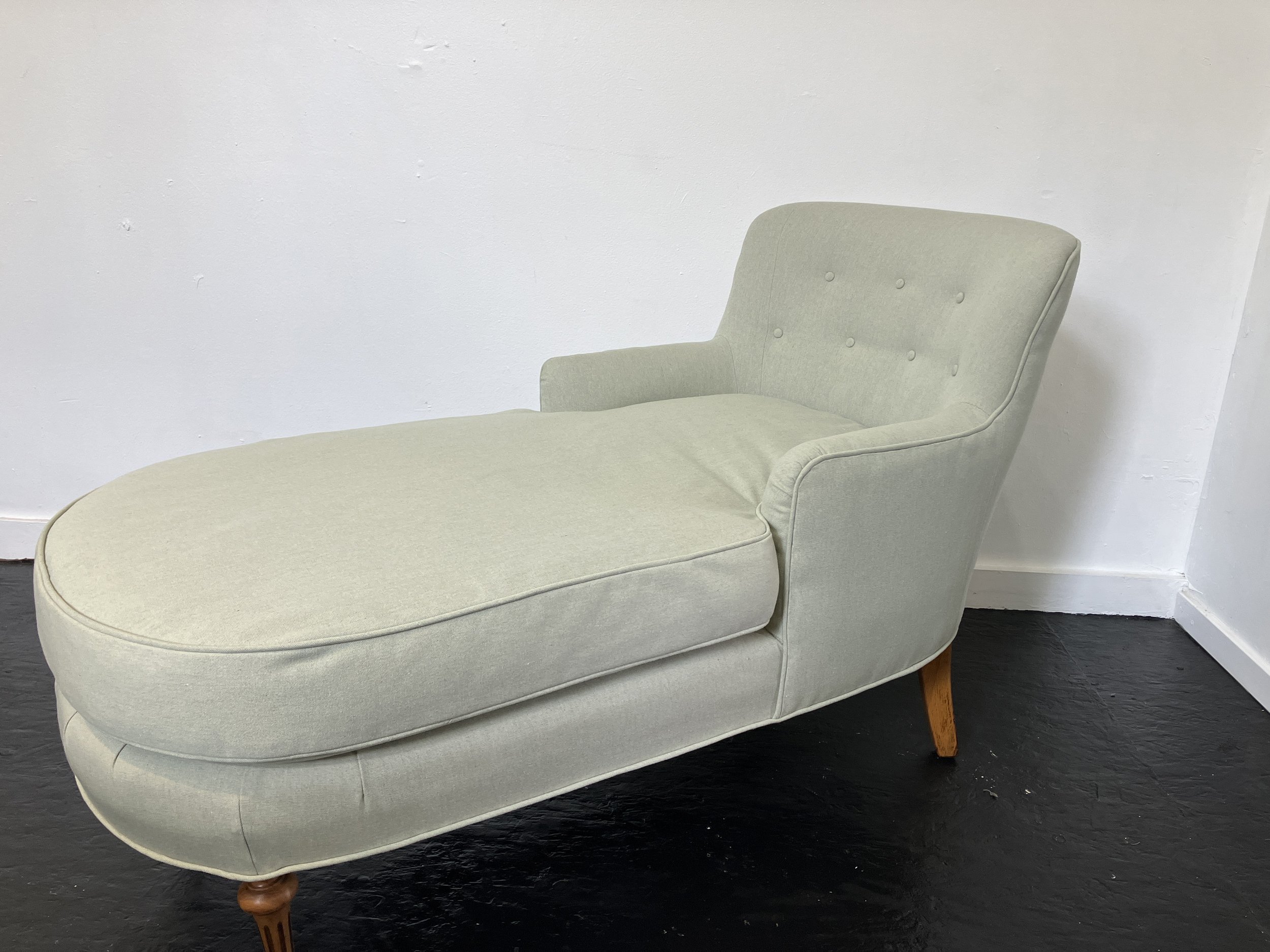 This pretty little thing came to me from Vinalhaven with no cushion. We loved the original fabric, but alas, it didn’t go with the decor. The client wanted it brought up to this era, and opted out of the ruffled skirt as well. The curved back was challenging (again a first for me), but it came out beautifully. All in all, a very nice piece, and super comfortable for an afternoon nap in the sunlight!